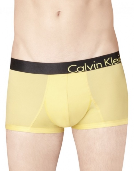 Pánské trenýrky Calvin Klein s klínem v rozkroku s gumou v pase. Žluté s logem na černé gumě.
